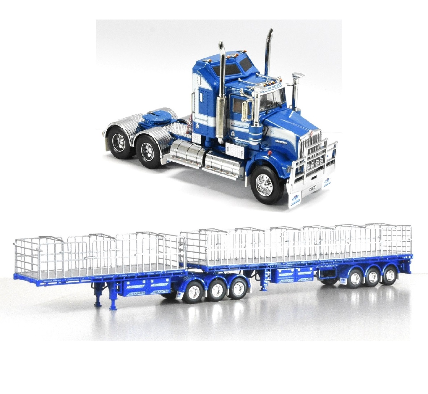 1:50 Scale Kenworth W900 SAR with Flat Top B-Double Trailer